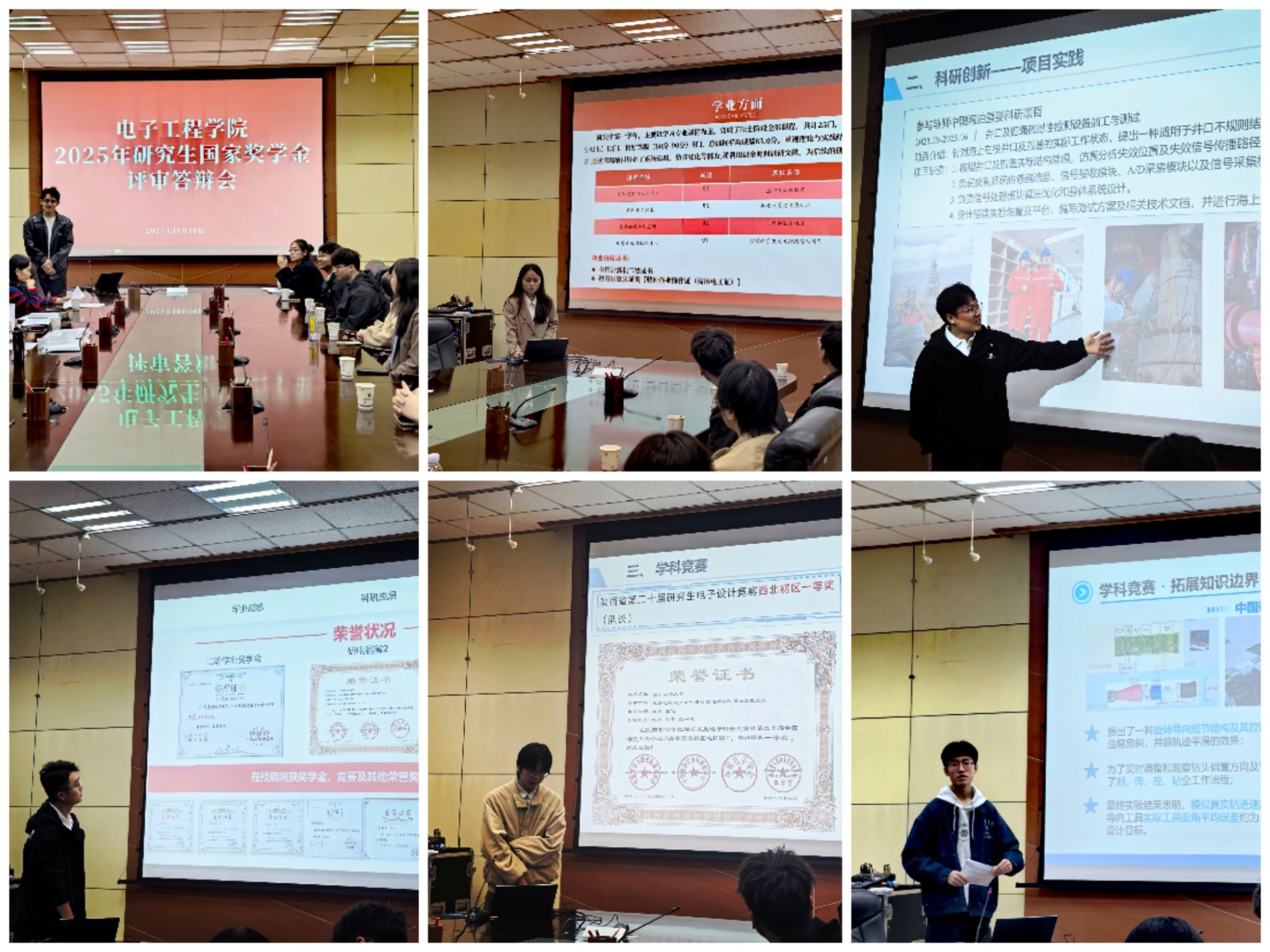 会议伊始,辅导员李君就研究生国家奖学金的评选标准、学院评审程序、申报学生资格审核、成果量化结果及答辩流程等进行了全面介绍。在答辩环节,候选人依次围绕学业成绩、科研竞赛、学术研究与社会实践等多个维度进行了系统汇报与展示,就评委老师的提问作出了回答。最终确定陈蒙等11名同学为电子工程学院2025年研究生国家奖学金拟推荐人选并进行公示。